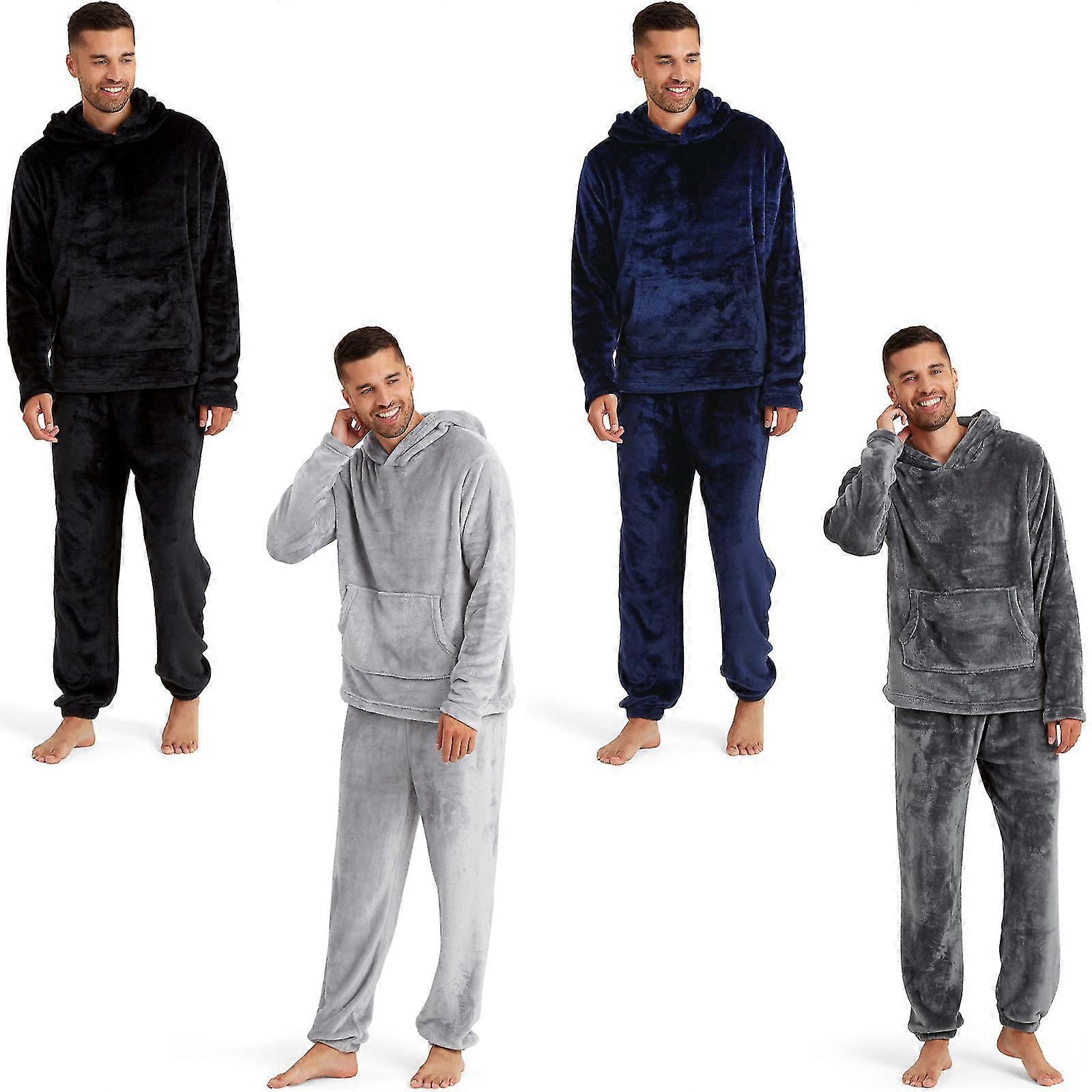 Men's Soft Fleece Hooded Pajama Set - Cozy Loungewear Top and Bottom PJs
