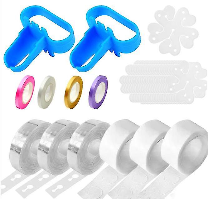 Niuniu [What a rich combination] 3 5-meter balloon chains, 3 rolls of glue (100 points per roll), 2 knotters, 20 double-layer plum clips, 10-meter ribbons, 1 roll each of pink, white, gold, and purple HIGH QUALITYOur balloon garland strips have a double hole design, which is more stable and easy to fix the balloon than the single hole design. Balloon Trim Kit, Balloon Arch Tape, Balloon Strips can be used to attach latex balloons of various sizes. Each dispensing is made of environmentally friendly materials, non-toxic and harmless. Balloon glue is very sticky, don't worry about the balloon falling off. MAKE EVERYTHING SIMPLEThese balloon garland kits include balloon tie tools and balloon clips, tools you will need as party accessories to make balloon knots, DIY balloon garlands, DIY balloon arches, quick and easy; Tape helps stick the balloon to the wall or window. Use balloon ribbons to make balloon bouquets, balloon ceilings. Use AnywhereThis balloon arch kit is able to make different types of balloon arches and garlands for birthday parties, weddings, halloween, Christmas, friends gathering parties. You will have an unforgettable party NOTE AND WARNINGThese balloon arch kits do not contain balloons. These kits contain small parts that can cause choking if swallowed. Please keep them away from children. Packing list: 1 set