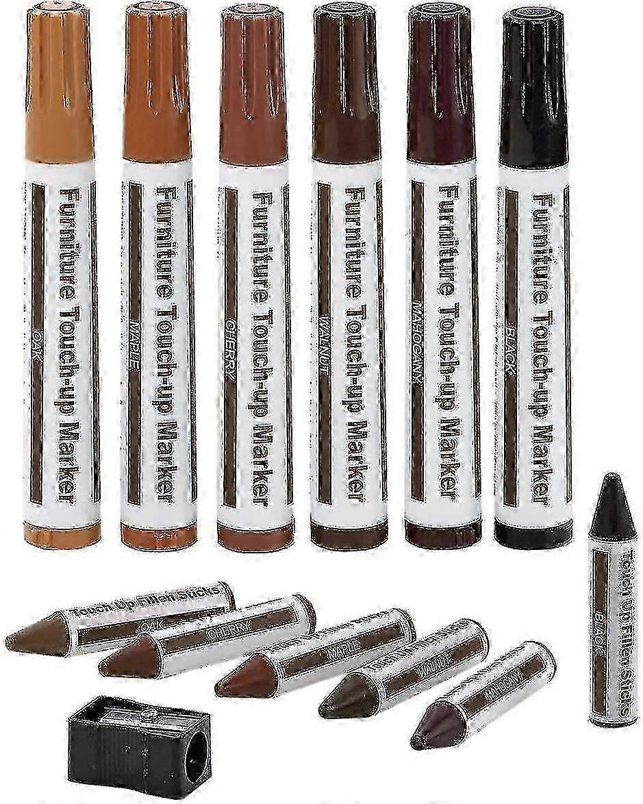 Furniture Repair Kit Wood Markers - Set Of 13 - Markers And Wax Sticks With Sharpener Kit, For Stains, Scratches