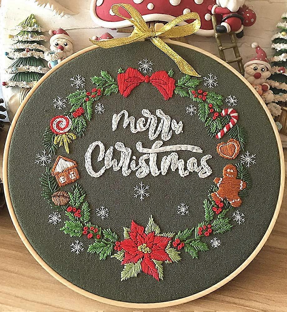 Embroidery Kit Merry Christmas Ornaments Snowflake Wreath Full Range of Embroidery Starter Kits for Beginners Adults Kids DIY Handmade Easy Patterns