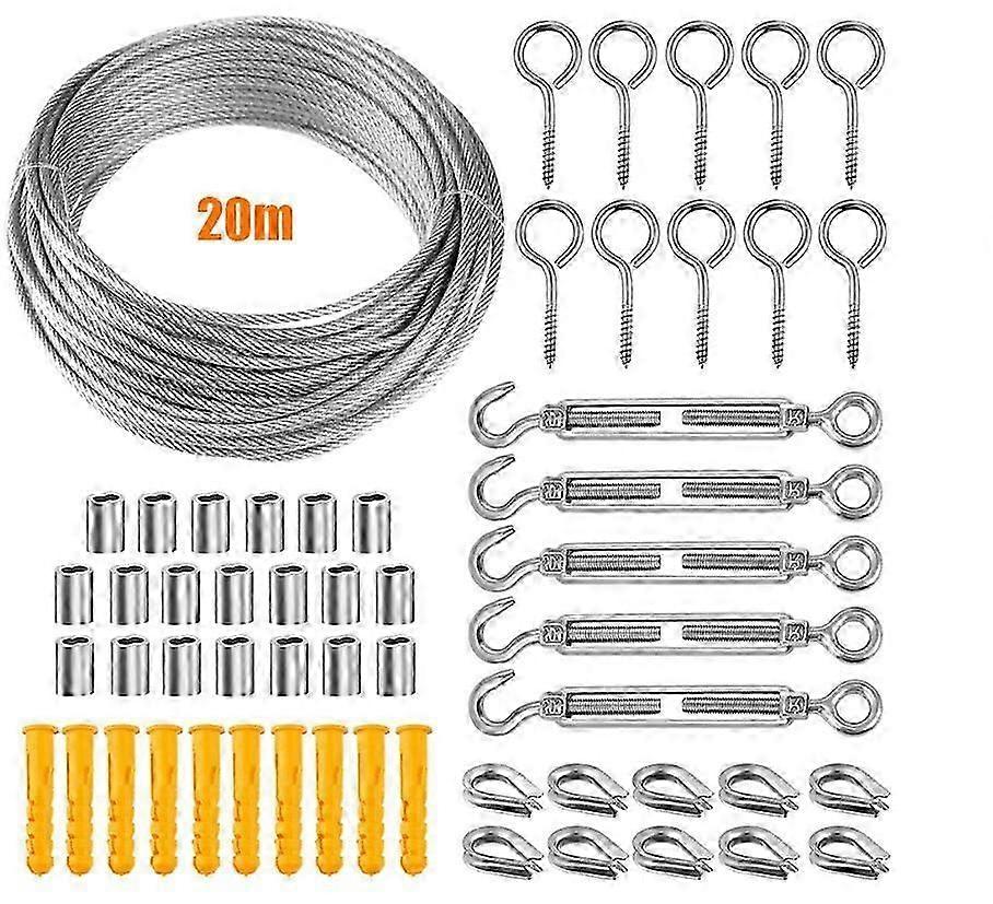 304 Stainless Steel Rope Hanging Kit,Nylon Coated Stainless Steel Cable,Pvc Steel Cable Tensioner(15m)