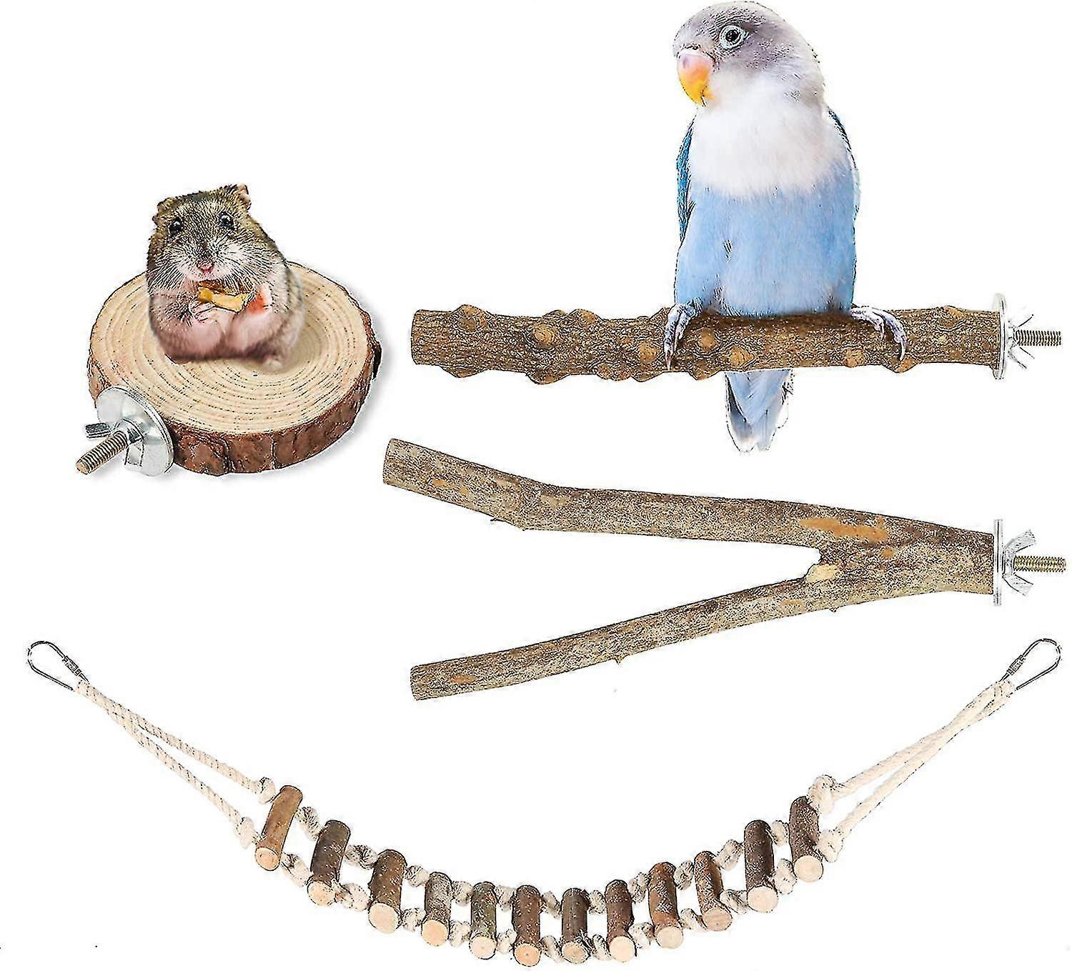 4 Pieces Bird Perch Stand Set, Bird Cage Accessories, Parakeet Nature Wood Stand_s