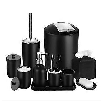 7-Piece Black Bathroom Set with Toothbrush Holder & Trash Can
