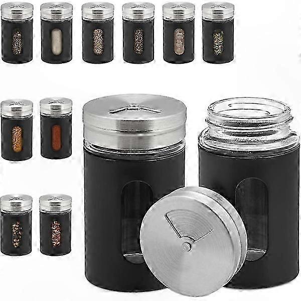 12-Piece Spice Shaker Set, 3 Hole Sizes, 90ml, Glass and Stainless Steel, Black/Silver