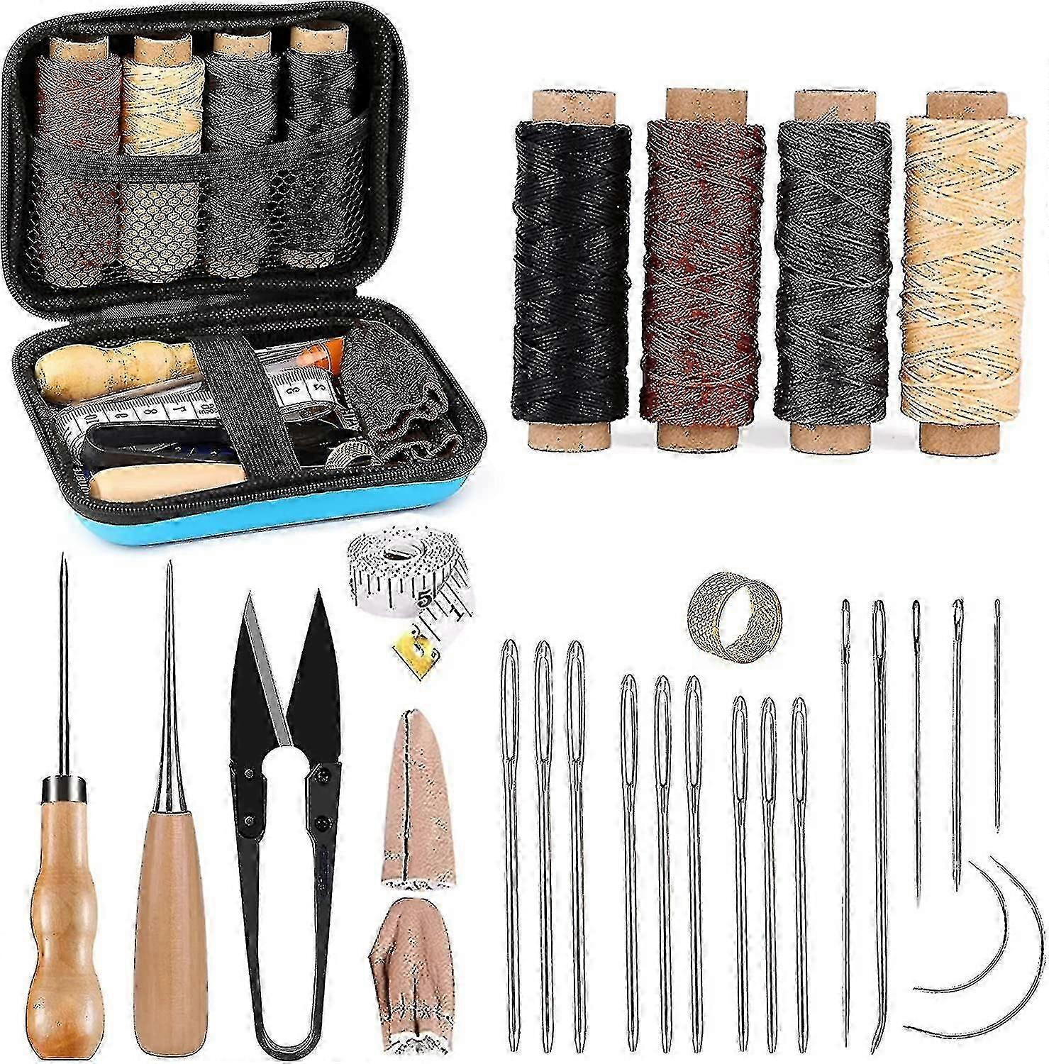 Leather Sewing Kit, Leather Working Tools And Supplies, Leather Working Kit With Large-eye Stitching Needles, Waxed Threa