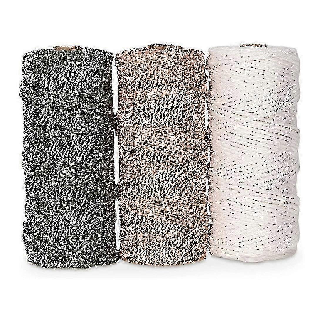 Macrame Yarn Set Of 3 - Cotton Cord For Diy Projects Tapestry Dream Catcher - Cotton Cord - White Olive Green Pink