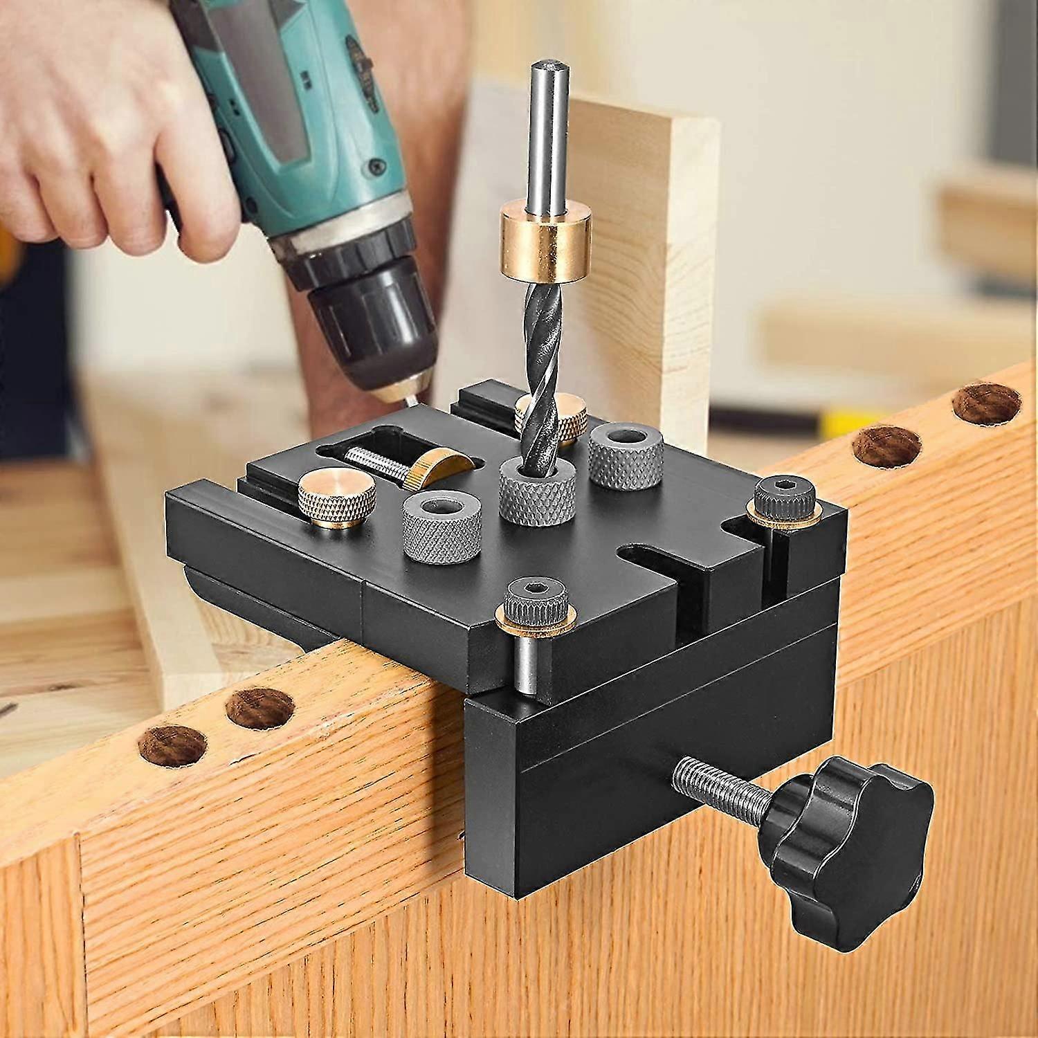 Woodworking Drill Guide Kit, 6/8/10/15mm Woodworking Hole Punch Locator 3 In 1 Drilling Hole Positioners Pocket Hole Jig Kit Tool
