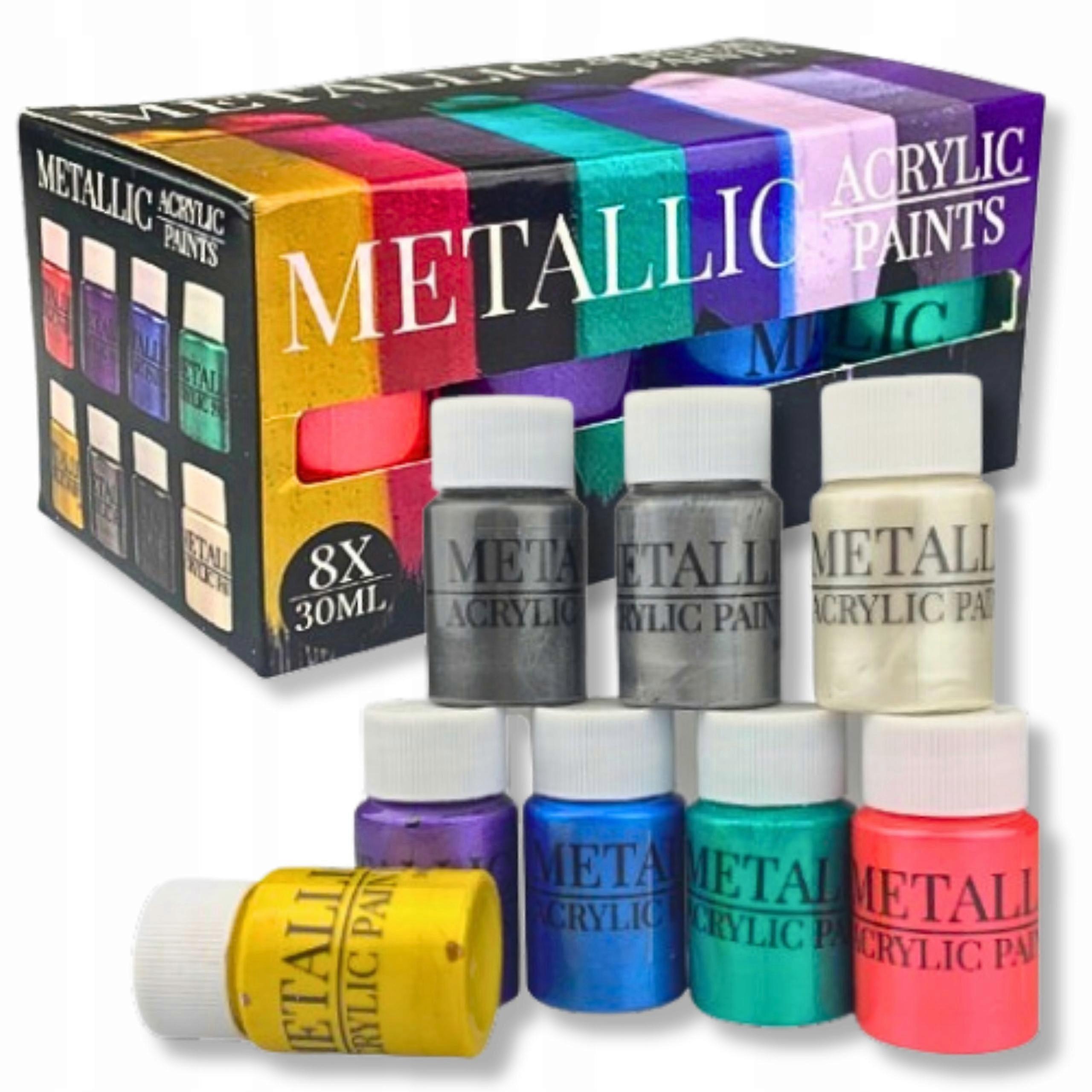 Acrylic Paints Metallic Paint Set 8 Pieces 30ml Gold Silver Gift