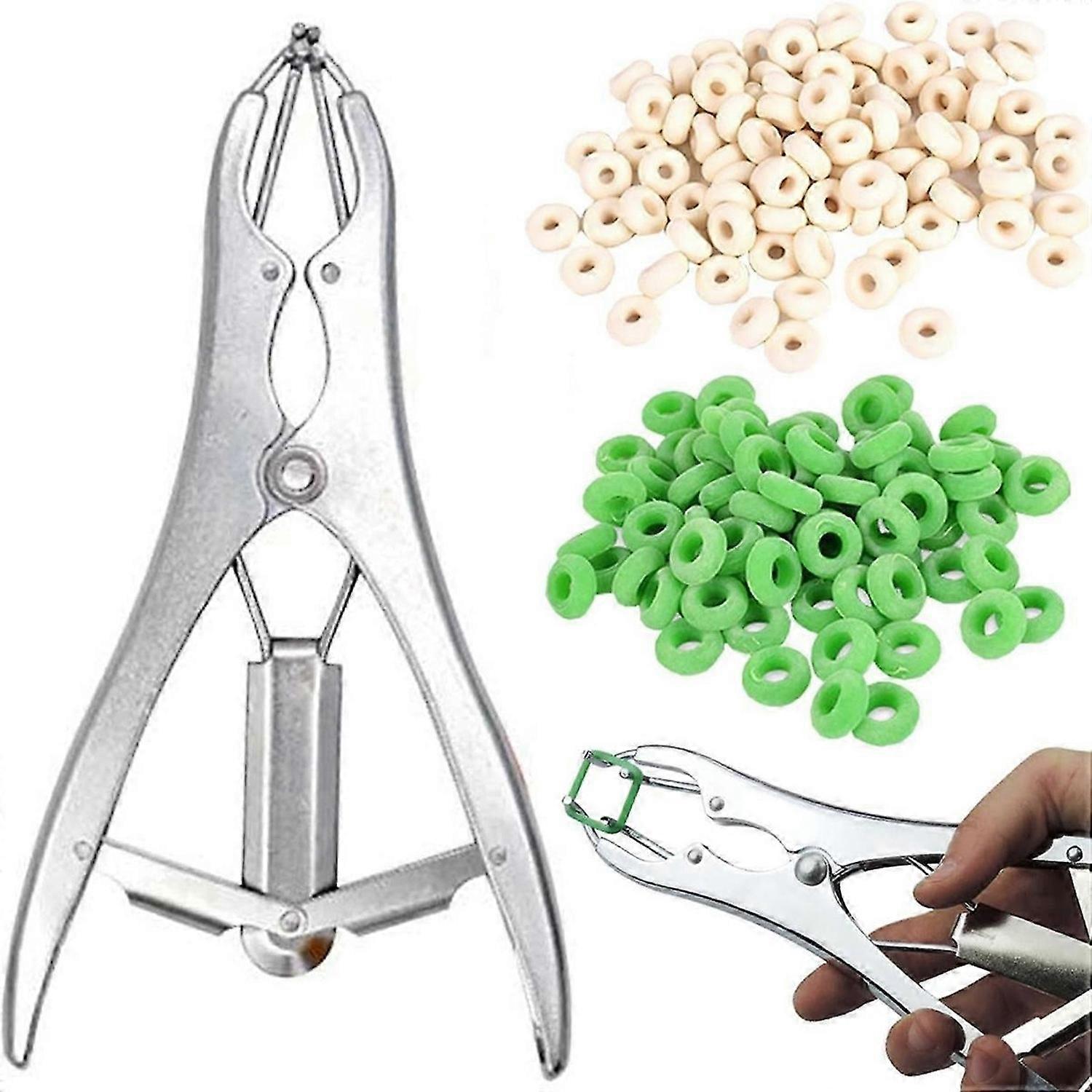 Goat Banding Kit, Banding Snap Clamps with 150 Pieces 2 Size Rings,