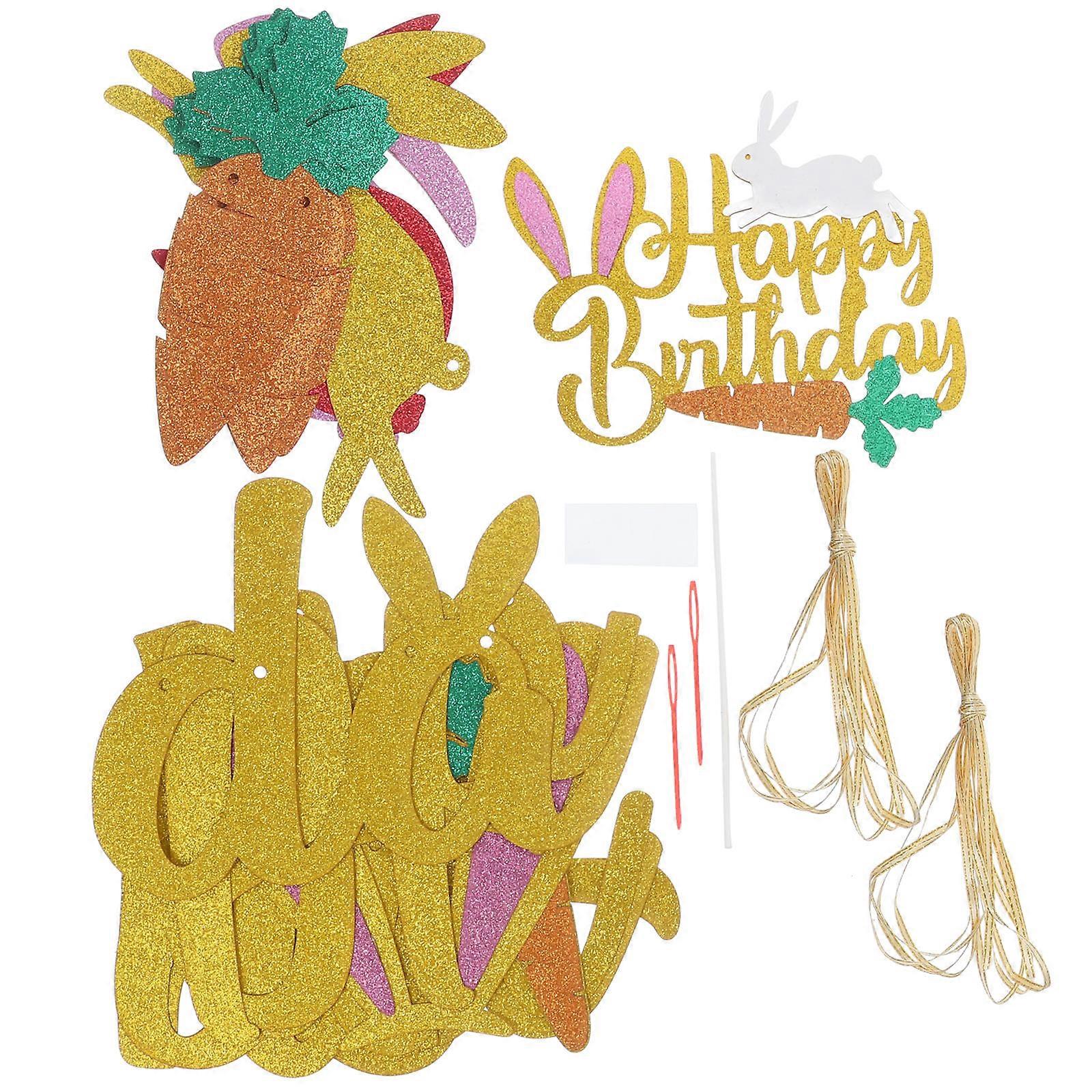 Easter Decoration Kit – Happy Birthday Banner, Bunny Banners, Cupcake Toppers for Party Favors & Celebrations