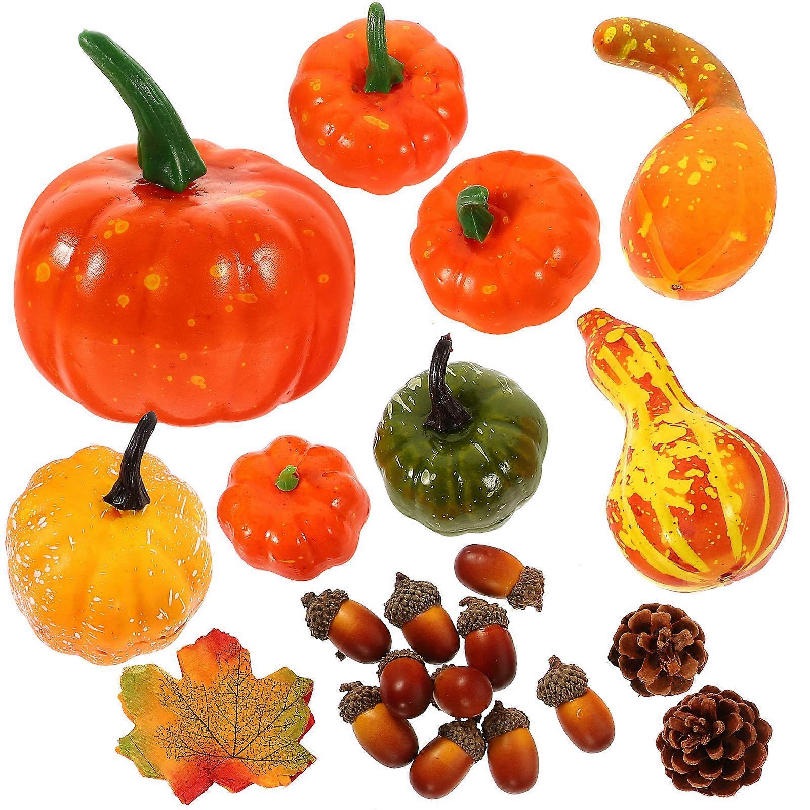 Thanksgiving Decoration Set with Artificial Pumpkins Maple Leaves and Pine Cones Acorns in Assorted Colors for Decor Foam