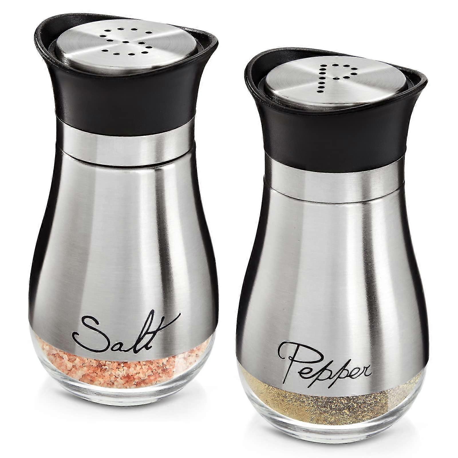 Salt And Pepper Shaker Set, Modern Stainless Steel And Glass Dispenser, 2 Pieces, 118ml