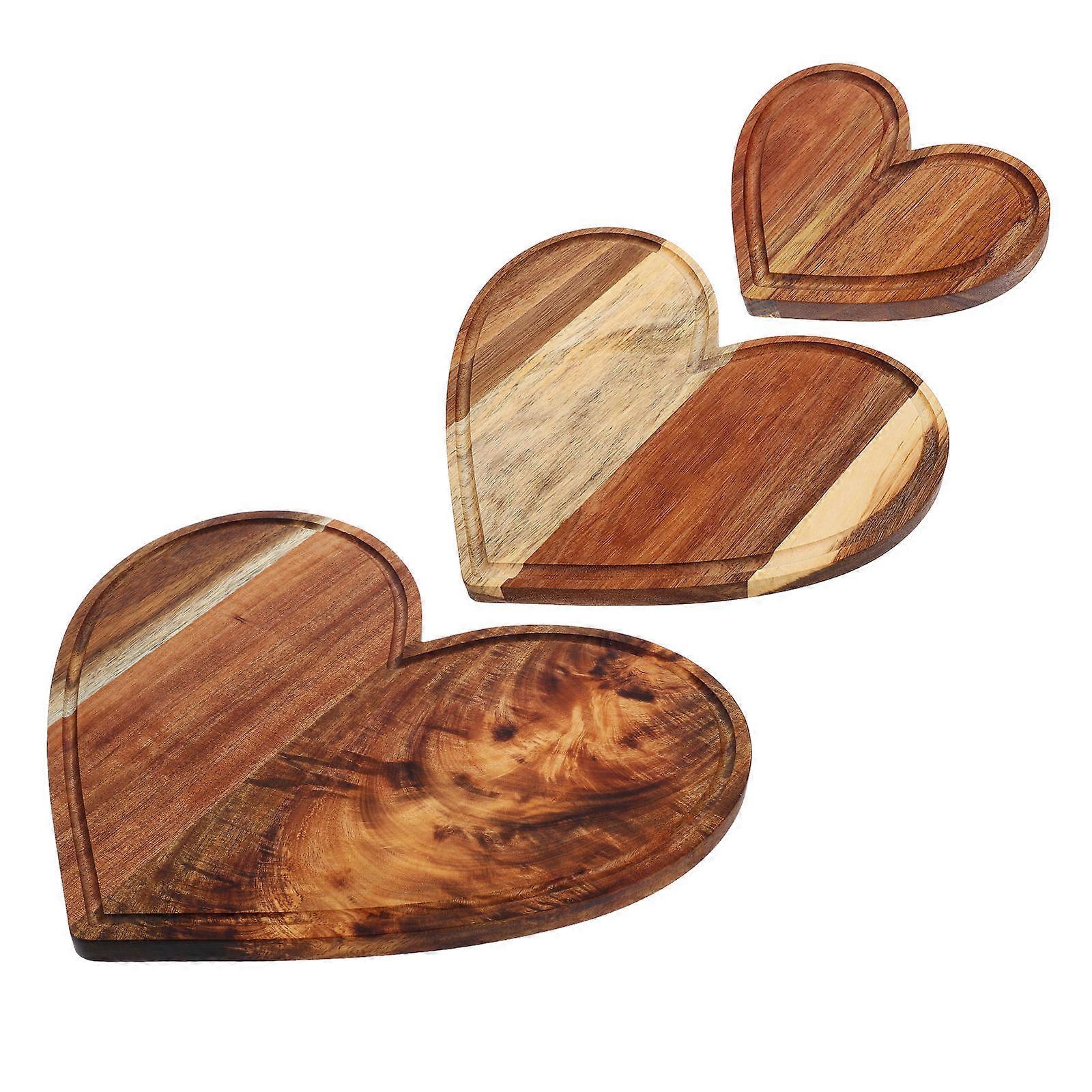 Impress your guests with this heart-shaped serving tray, ideal for valentines Day or any celebration. Use it as a cheese board, dessert holder, or bread plate. The natural wood finish complements any table setting, while its sturdy construction durability. This tray is not only functional but also a beautiful piece of kitchenware. Features -Color:Multi -Material:Wood -Size:38.50X33.50X1.50cm/15.13X13.17X0.59in(L) -Size:27.50X25.00X1.50cm/10.81X9.82X0.59in(M) -Size:14.80X13.00X1.50cm/5.82X5.11X0.59in(S) -Multipurpose functionality: ideal for chopping, slicing, and dicing various ingredients, making meal preparation efficient -Unique heart shape: the heartshaped design brings a unique and loving element to your kitchen space -Sturdy and clean: made from wood, this board is both and easy to maintain, promoting clean -Ideal for entertaining: use it as a serving tray for cheese, bread, desserts, and snacks, ideal for hosting guests - workmanship: carefully crafted to prevent damage and wear, ensuring it remains functional and attractive Package list: 3 x chopping board dish