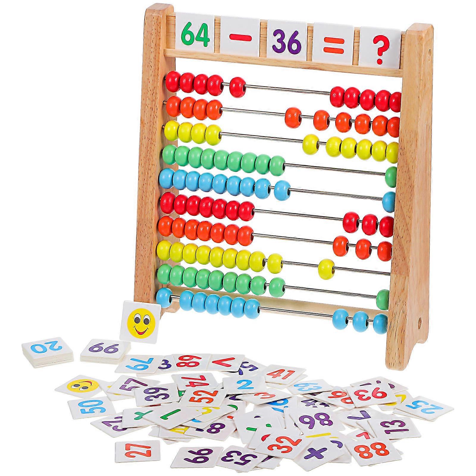 Wooden Abacus Set with Cards Counting Beads for Preschool Math Learning Aid, Early Childhood Educational Toy