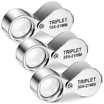 Jewelers Eye Loupe Set 10X, 20X and 30X Pocket Jewelry Loupe, A