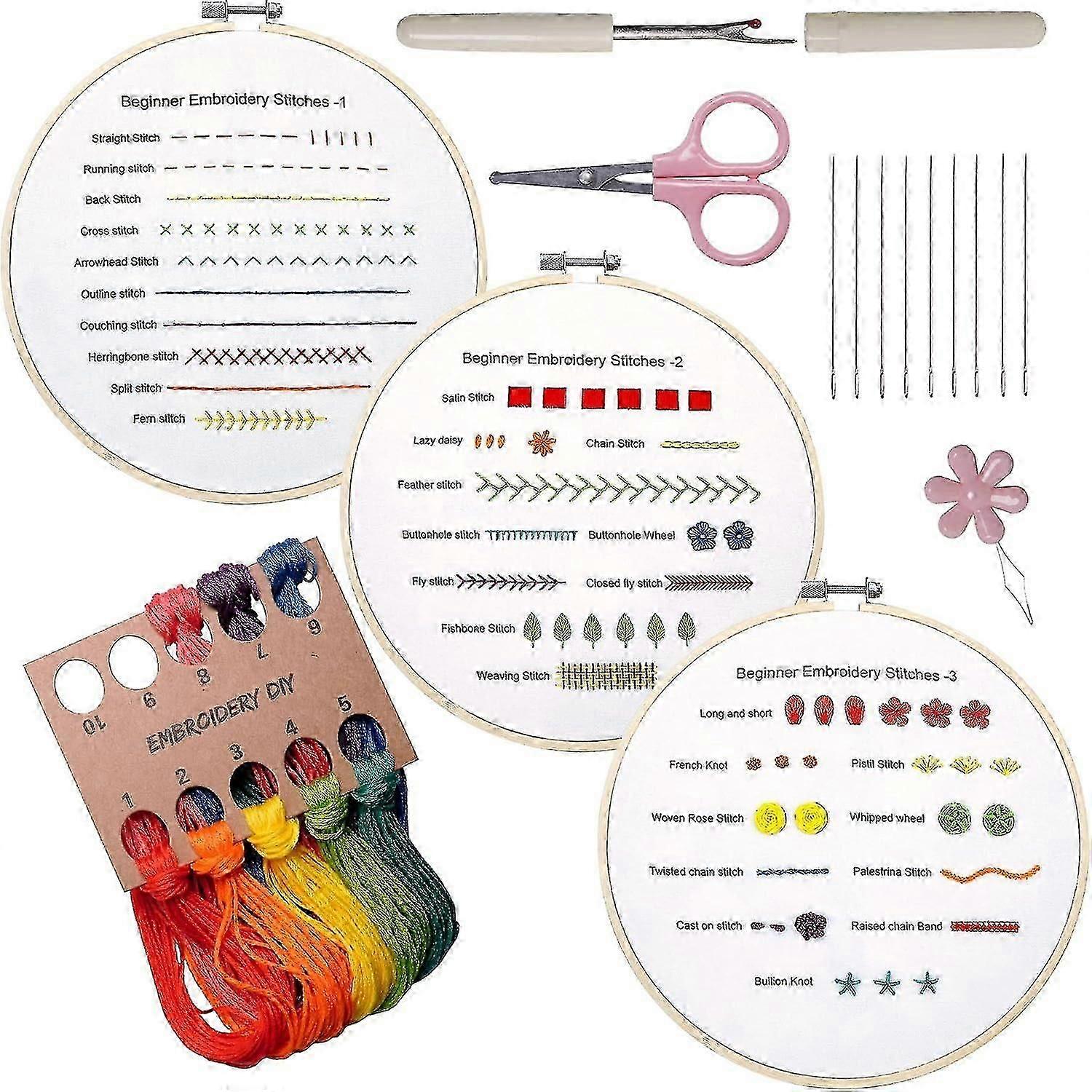 Beginners Embroidery Stitch Kit, 3 Sets Embroidery Stitch Kit Embroidery Skill Techniques For Hand Stitch Craft Lover