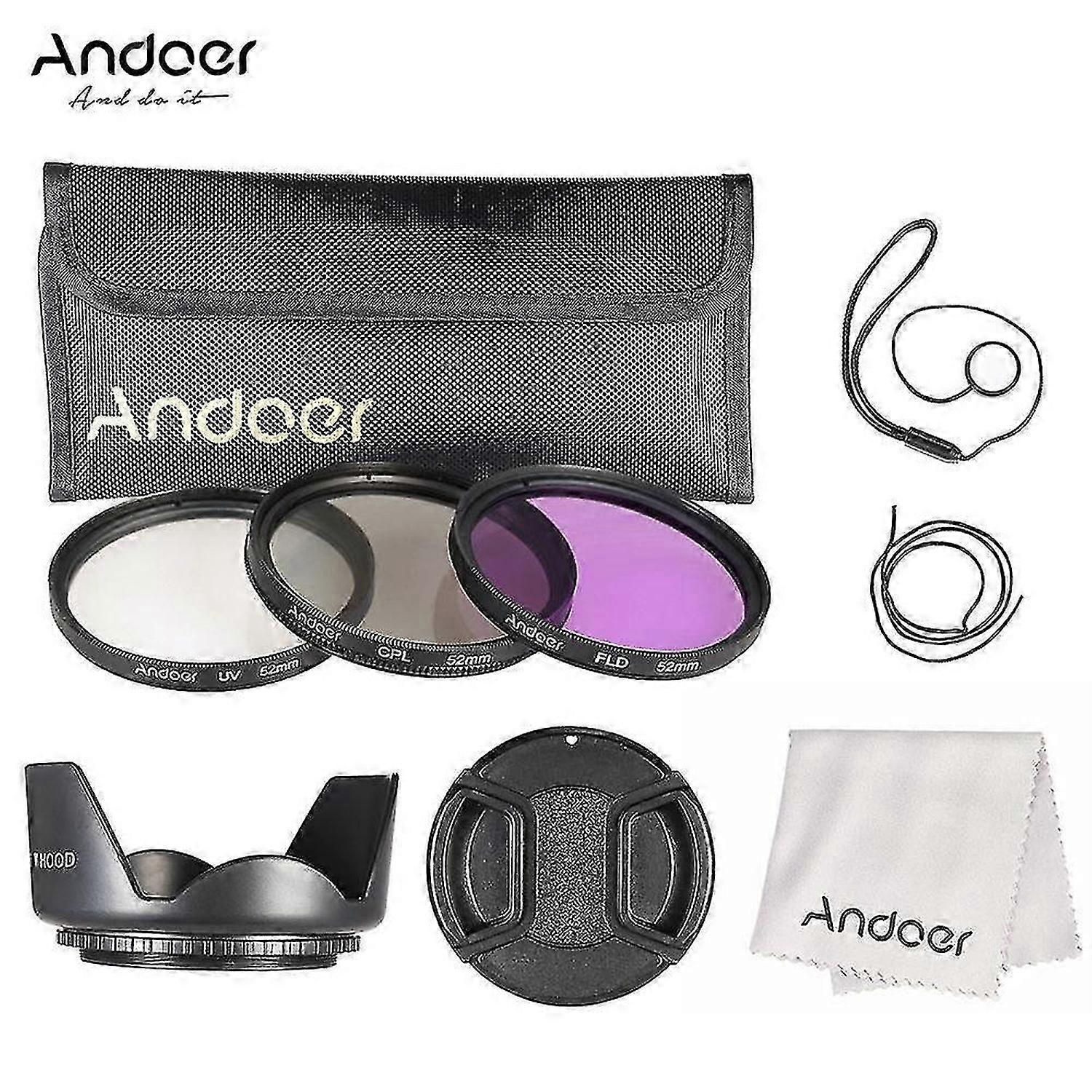 Andoer 52mm Filter Kit (UV+CPL+FLD) + Nylon Carry Pouch + Lens Cap + Lens Cap Holder + Lens Hood + L