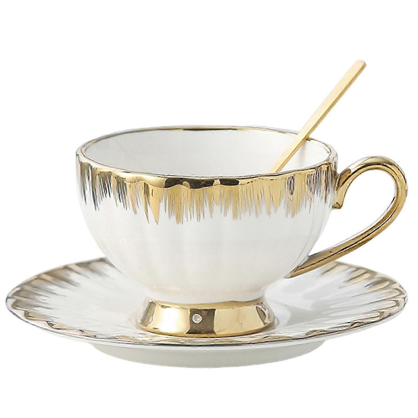 Teacup Saucer Set with Spoon Retro Elegant Pattern Coffee Cup Set for Tea Coffee