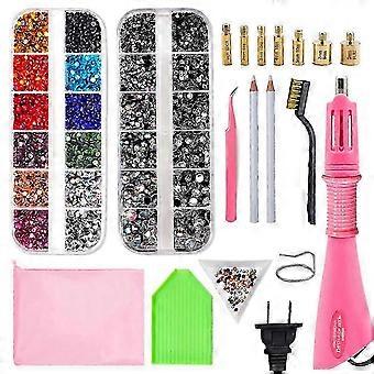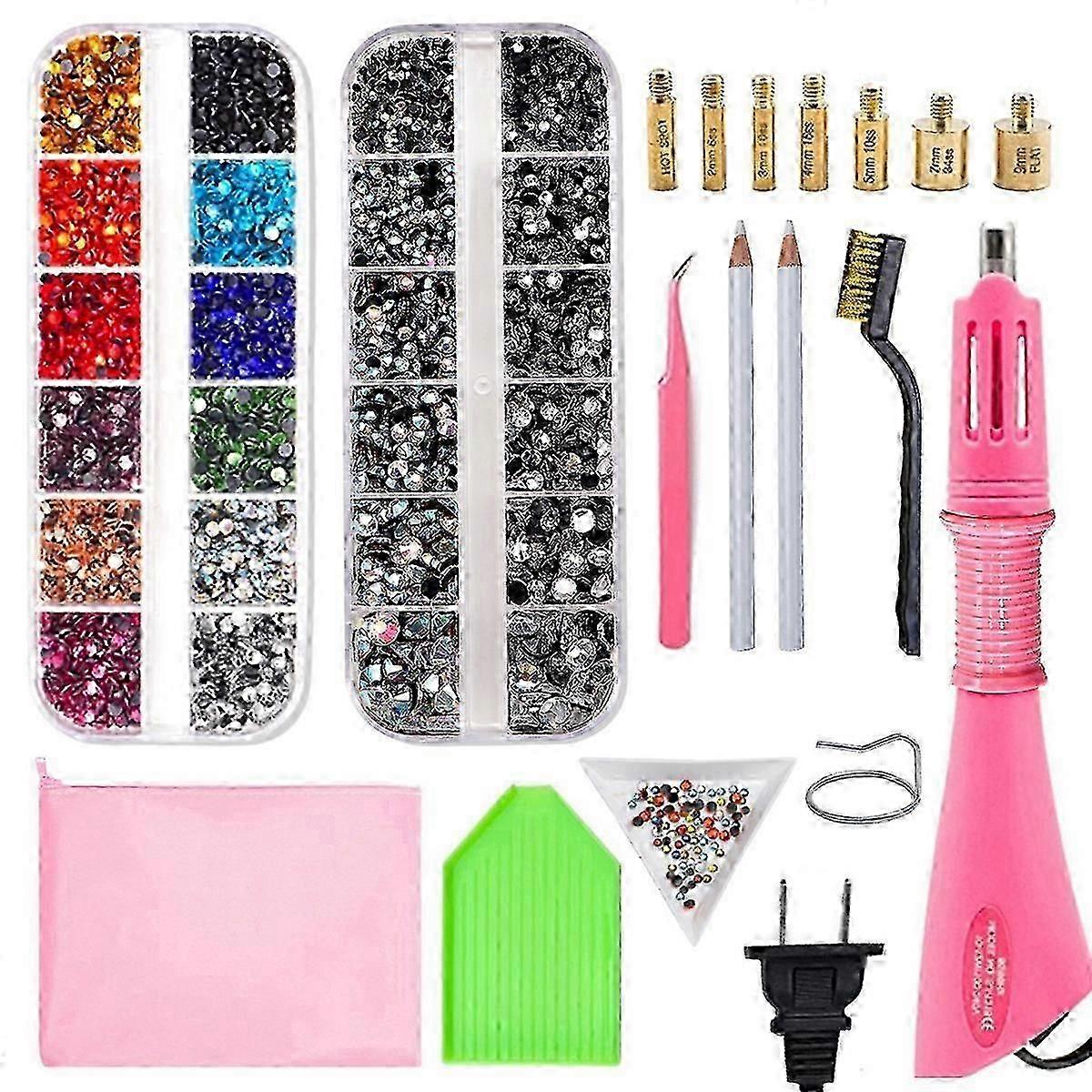 Thermosetting Rhinestone Applicator Set with 7 Adhesive Tips and 2 Containers Perfect for Arts and Handmade Projects