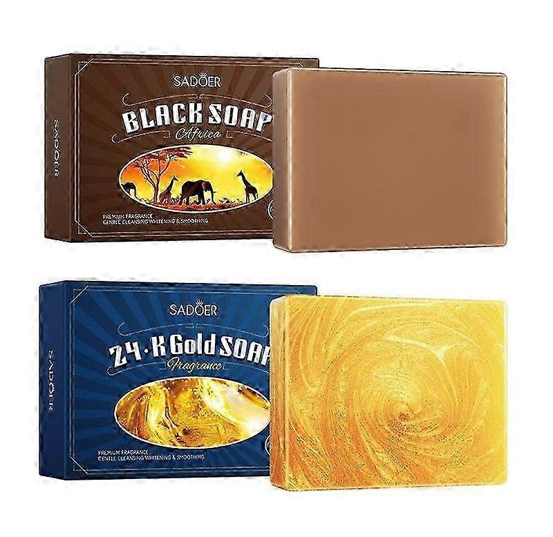 Essential Oil Soap Bars kit - African Black Soap & 24K Gold Soap,Hand Made Face Body Bath Cleansing Soap Bars Skin Care Products Gift Set