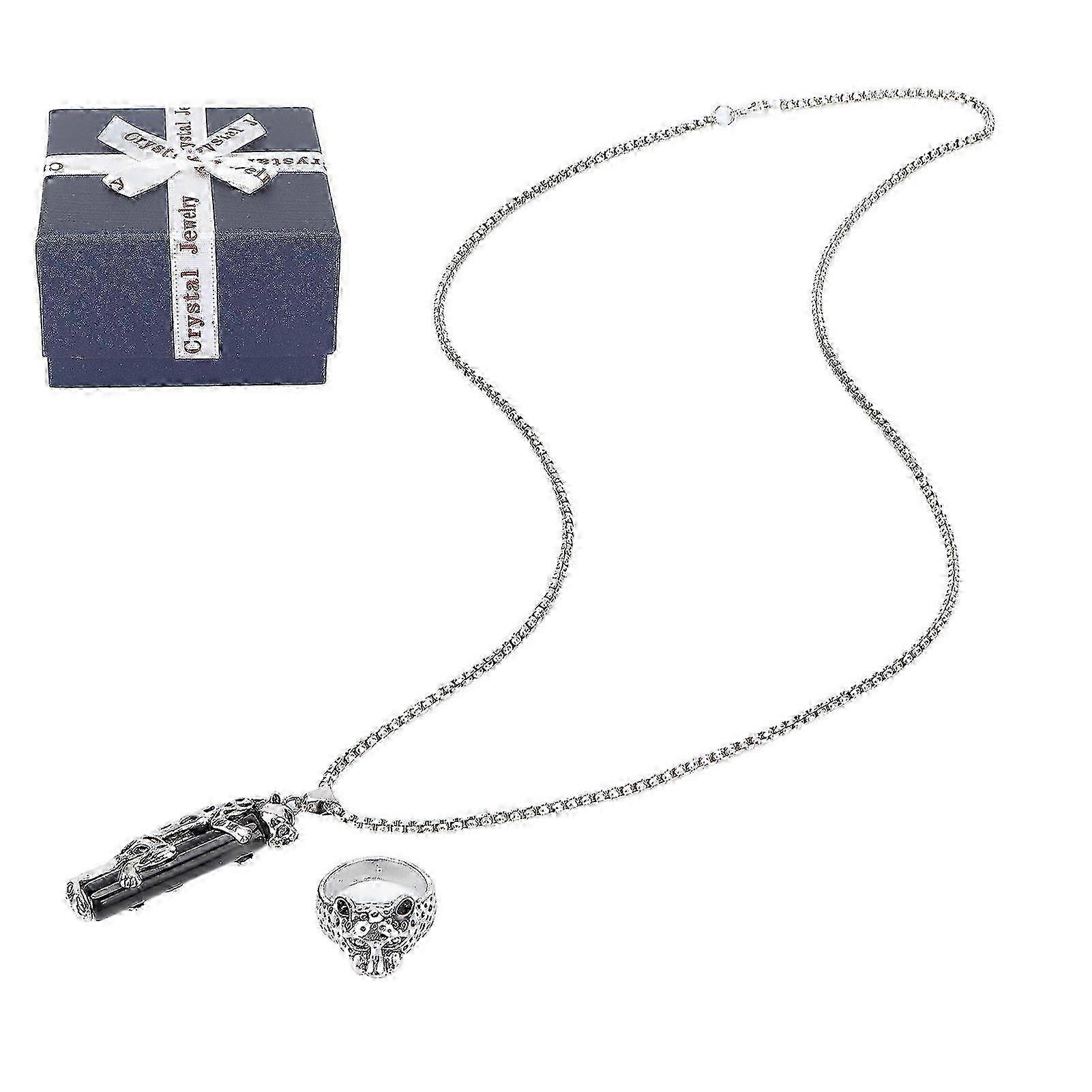 Leopard Pendant Necklace and Ring Set - Stylish Jewelry for Men with Pillar Shape Design