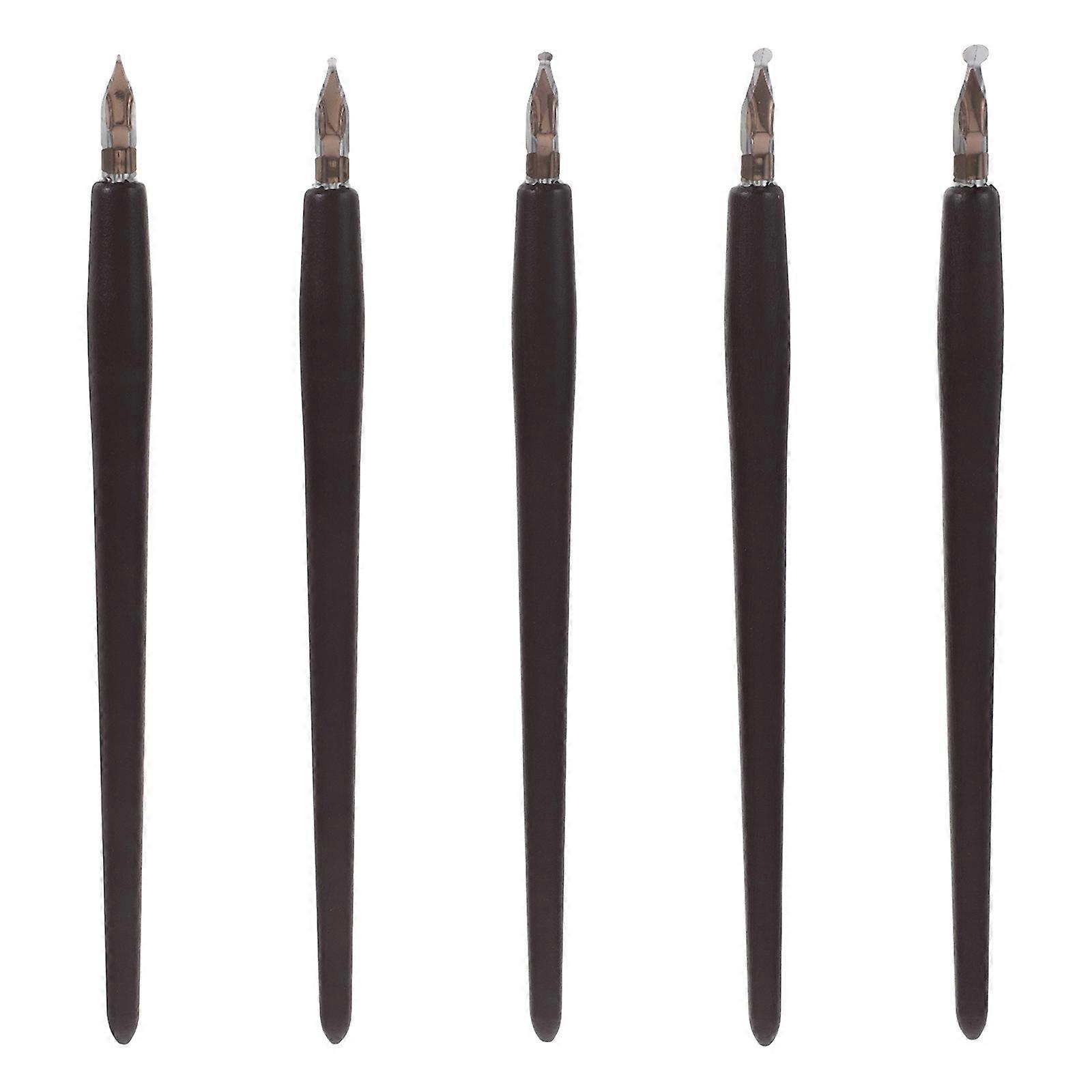 Wooden Dip Pen Set for Calligraphy with Vintage Design Dark Brown Color Ideal for Beginners and Artists 5pcs