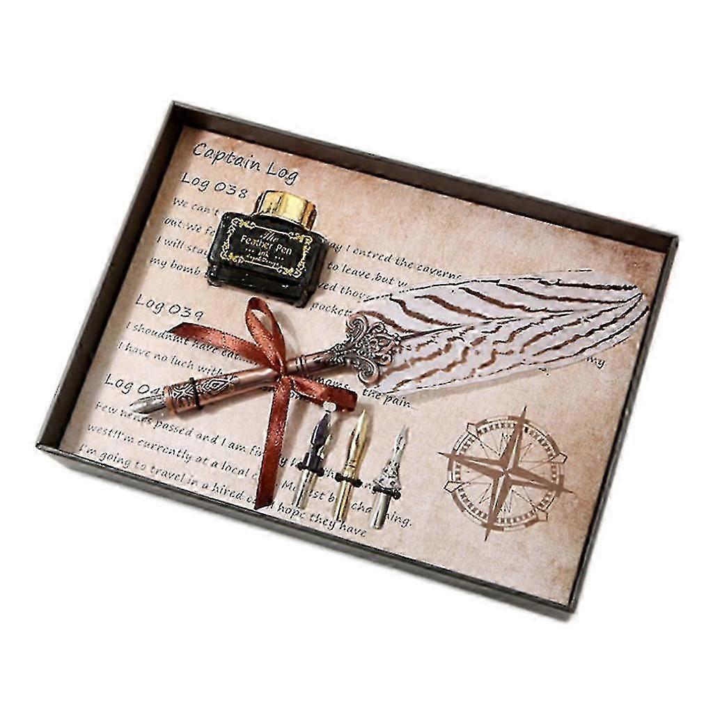 Vintage Feather Quill Dip Pen Set with Ink and 3 Nibs - Stationery Gift