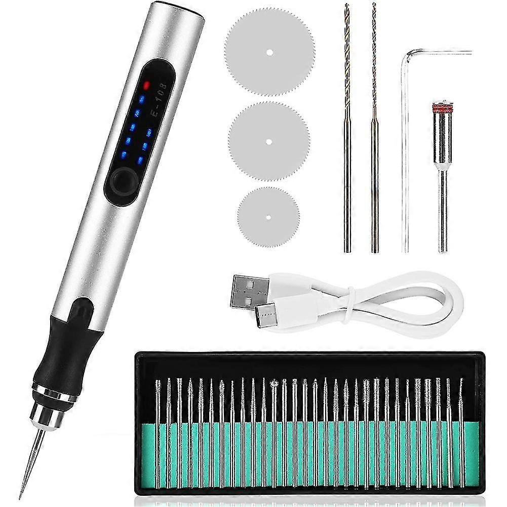 Electric Engraving Pen Kit,Cordless Rechargeable Grinding Pen with 35 Bits,for Carving Glass Jewelr