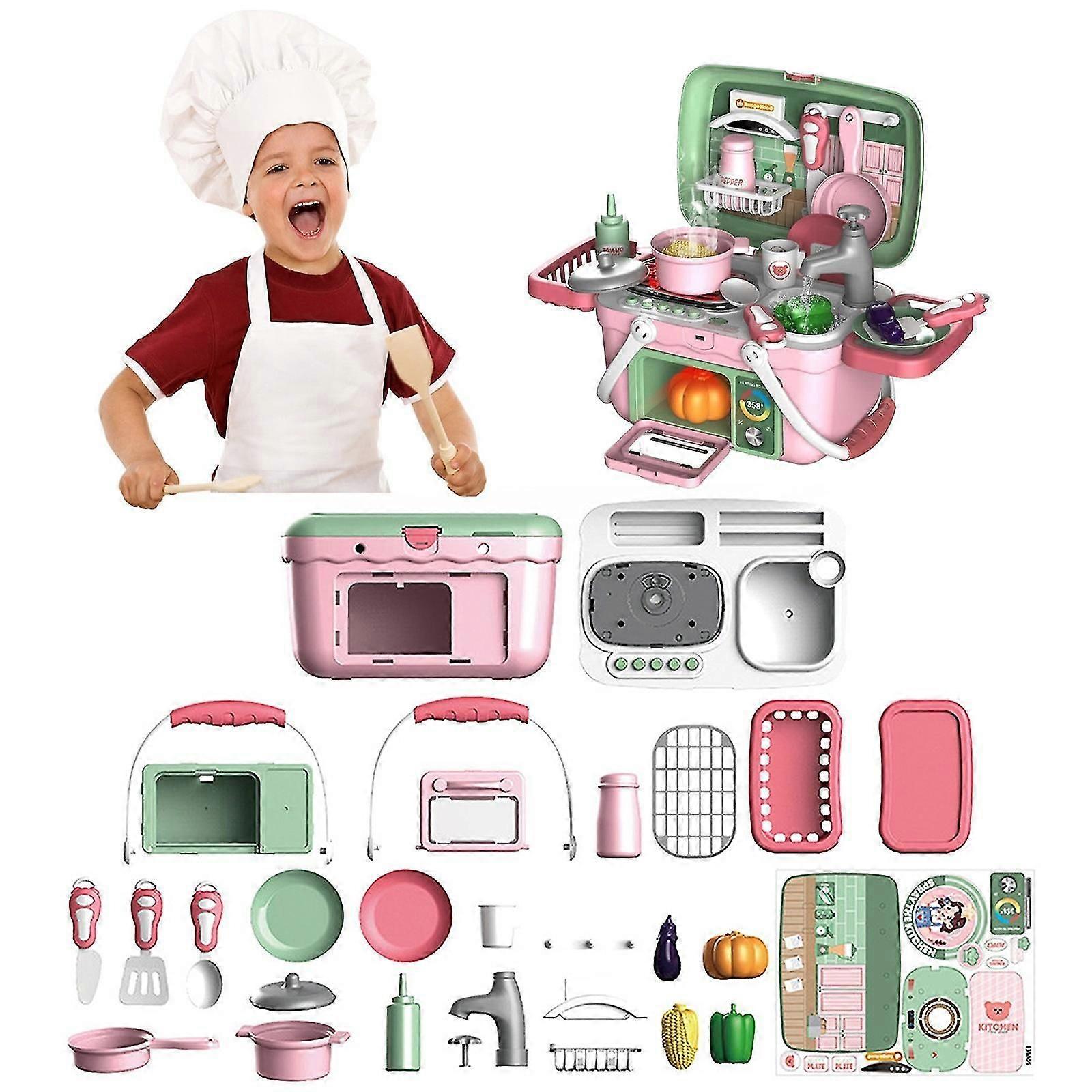Kitchen Play Set With Accessories- Mini Kitchen Set With Realistic Light Sound - Indoor Games Kitchen Cooking Playset - Toys For Toddlers Children & G