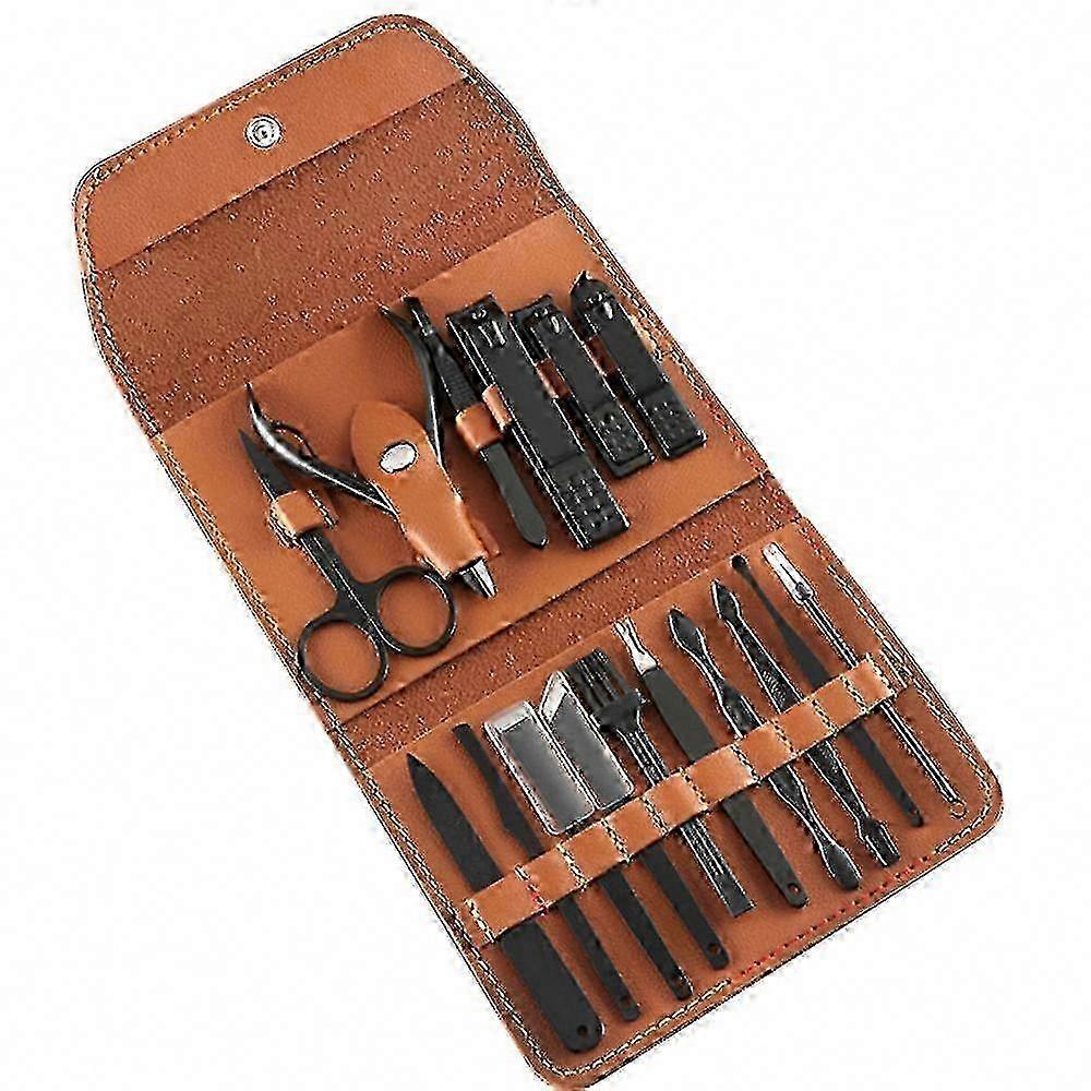 16-Piece Professional Manicure & Pedicure Kit with Travel Case - Brown Nail Clipper Set