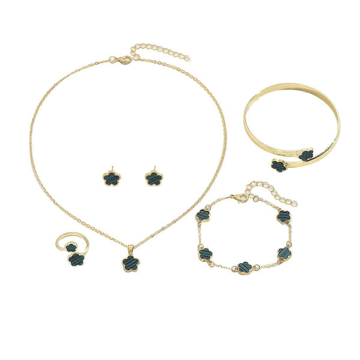Women's Jewelry Set, 5-Piece with Clover Petal Design, Drop Oil Earrings Necklace Ring