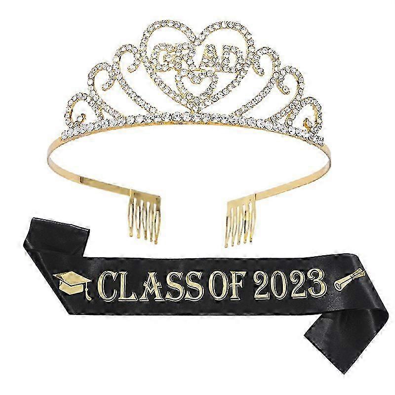 2023 Graduation Party Supplies Kit, Glittered Graduation Princess Crown and Sash