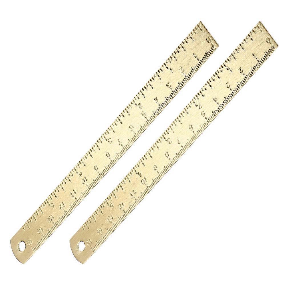 The brass bookmark ruler is an essential addition to any student's or professional's toolkit. With its dual scale, you can easily switch between metric and measurements, ensuring accuracy in all your projects. Use it as a notebook ruler to keep your notes straight and organized, or as a drafting ruler for detailed technical drawings. Its compact size makes it a convenient pocket ruler for on-the-go use. Features -Color:Golden -Material:Brass -Size:16.50X1.70X0.10cm/6.48X0.67X0.04in -Brass construction: crafted from brass, this ruler is both sturdy, suitable for everyday use in various settings -Accurate measurements: the ruler's engraved scales are clear and precise, ensuring accurate measurements for all your drafting and drawing projects -Versatile usage: ideal for a range of applications, this ruler can be used for measuring, drawing, and even as a unique bookmark for your favorite books -Aesthetic appeal: the ruler's vintage brass finish and elegant design make it a beautiful and functional accessory for any workspace -Convenient portability: its small and lightweight design allows you to easily carry it with you, making it a handy tool for students, professionals, and hobbyists Package list: 2 x brass rulers