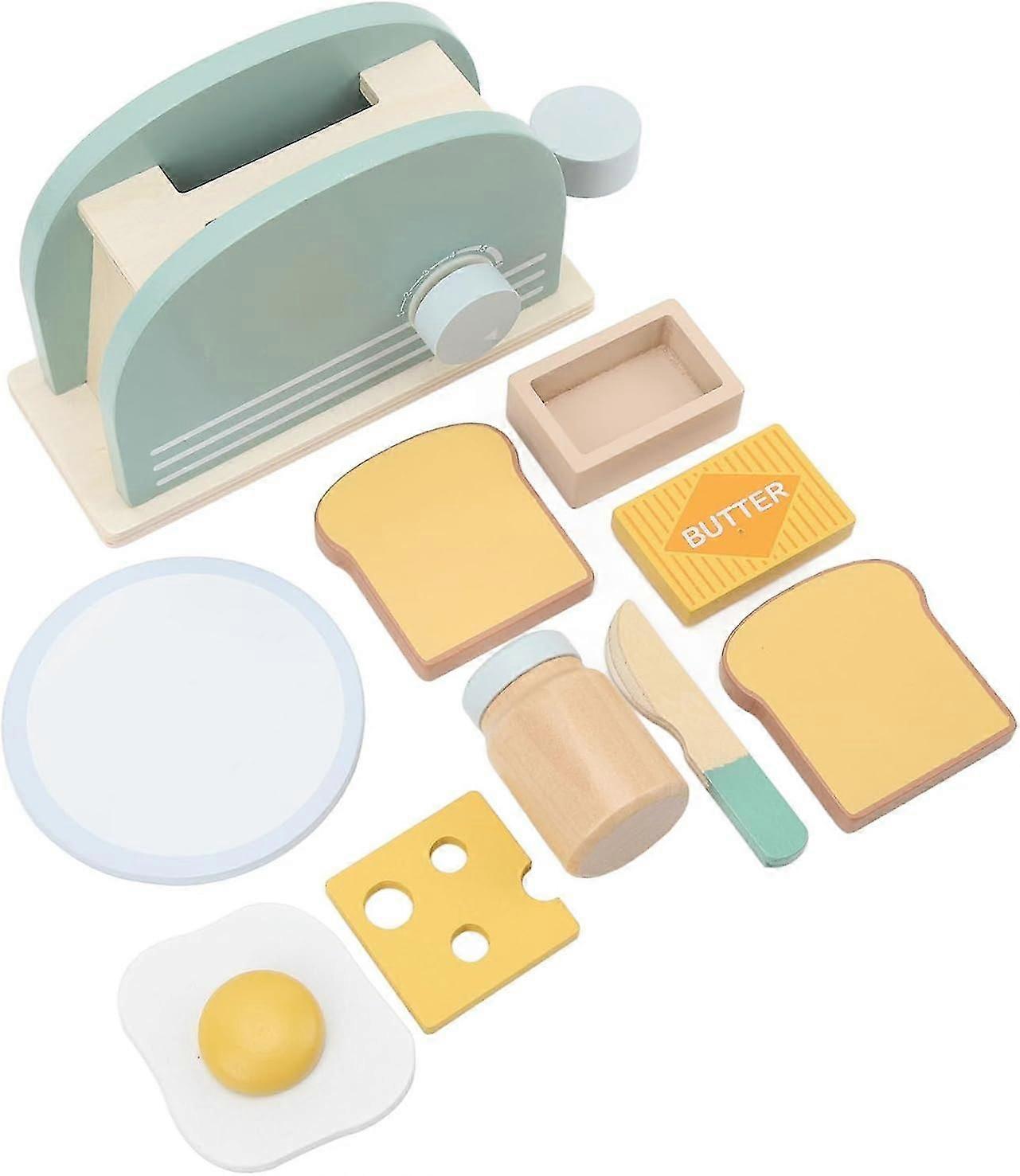 Wooden Kids Play Kitchen Set with Pop Up Toaster, Coffee Maker, and Bread - Pretend Play Accessories for Toddlers,hw