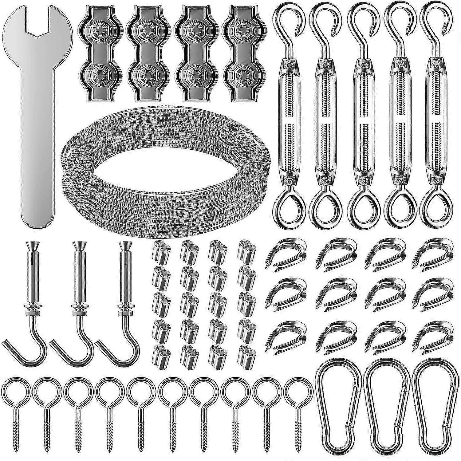 30m Stainless Steel Rope Hanging Kit, 2mm Coated Stainless Steel Rope with Turnbuckle and Hooks, for Hanging Lights, Climbing Plants, Clotheslines, Pe