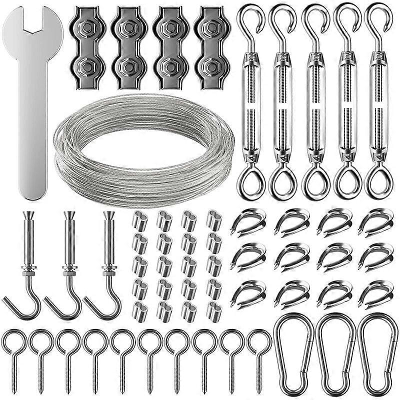 30m Stainless Steel Rope Hanging Kit, 2mm Coated Stainless Steel Cable with Tensioner and Hooks, for Light Suspension, Climbing Plant, Clothesline, Pe