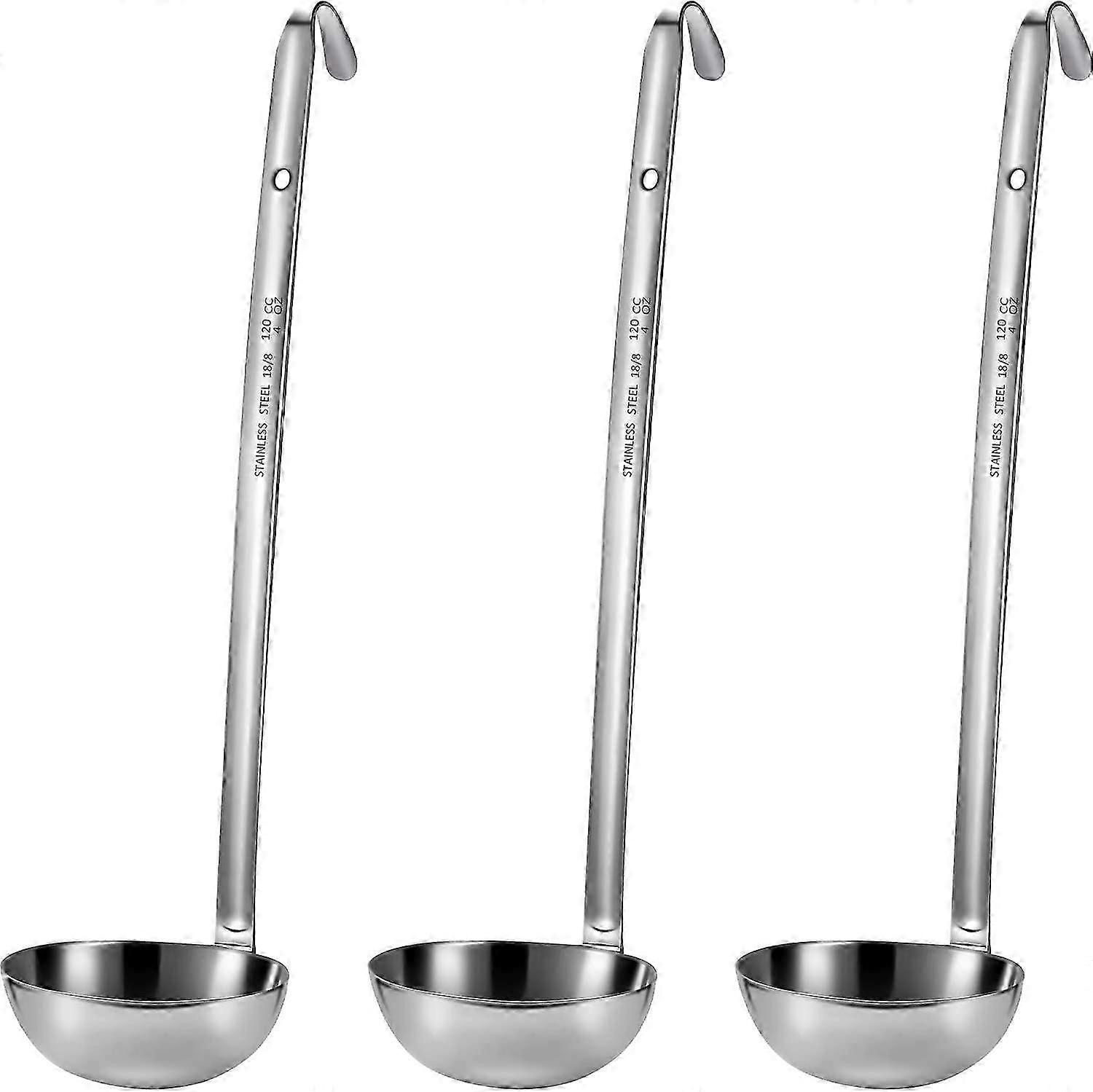 3-Piece Stainless Steel Soup Ladle Set with Pouring Rim - 4 oz Kitchen Cooking Utensils for Soup & Sauce