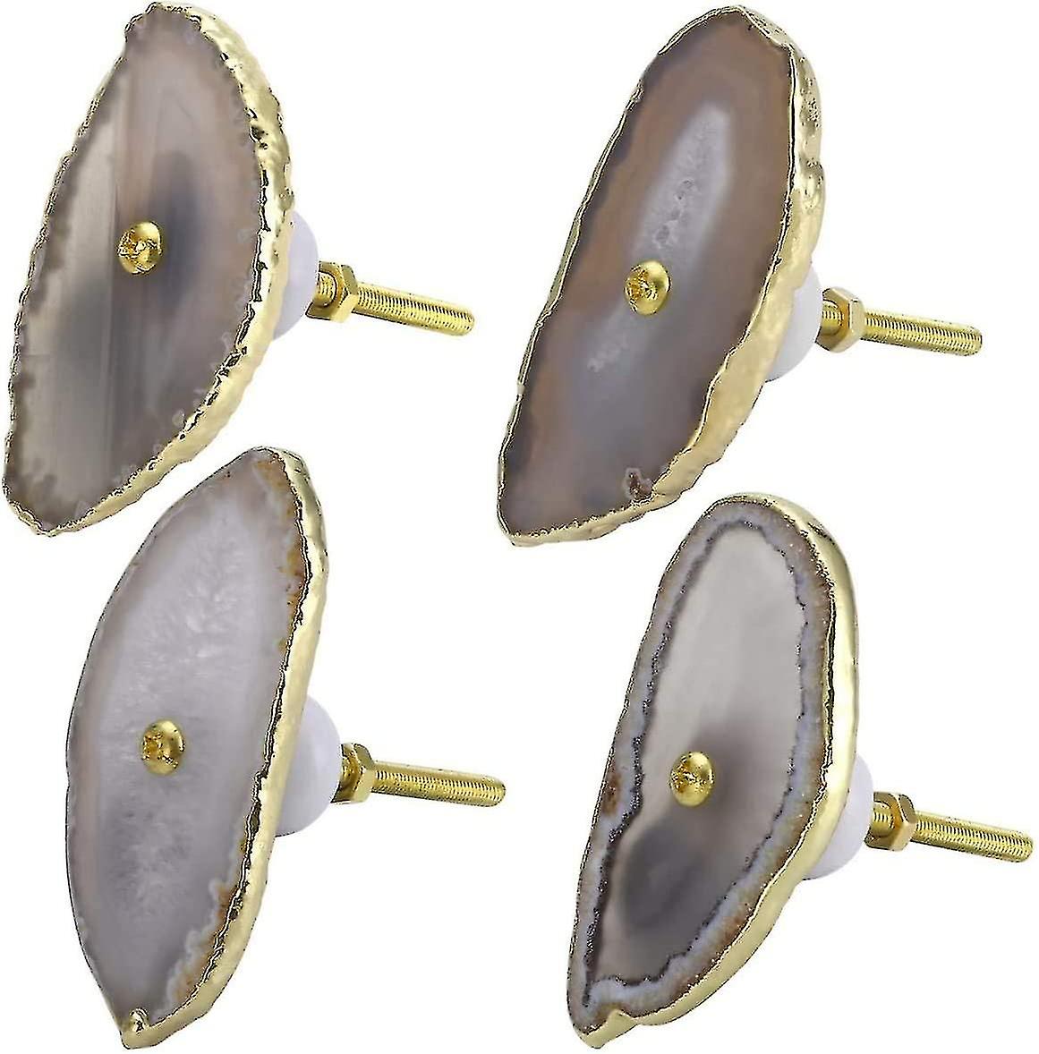 Natural Agate Knob Set Dresser Bedside Table Drawer Decor 4 Pieces (d-583-a)