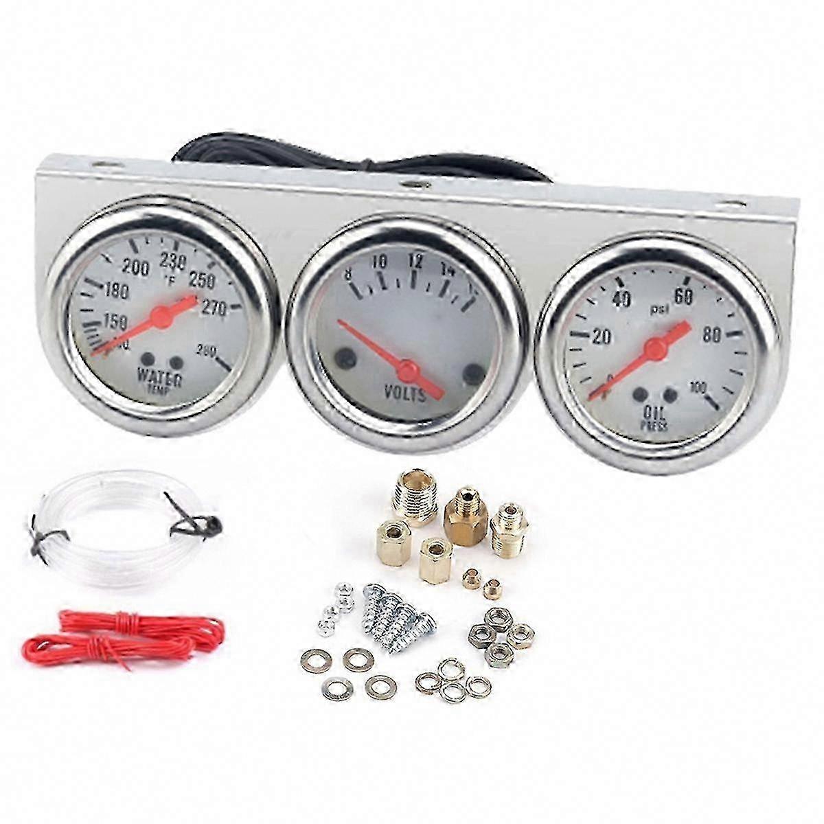 Triple Gauge Kit: 2 Inch Chrome Oil Temp, Water Temp, Volt, and Pressure Gauge Set