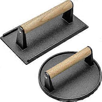 طقم مكبس برجر 2 ، بيكون بريس برجر شاشر لصينية الخبز ، 7 مكبس شواء دائري و 8 × 4.2 مكبس همبرغر مستطيل بمقبض خشبي ، كاليفورنيا شديد التحمل