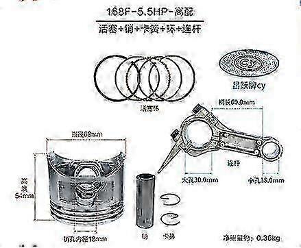 Piston kit & Connecting rod for Chinese 152F 154F 168F 170F 173F 177F 188F 190F 192F gasoline engine kolben ring pin clip set