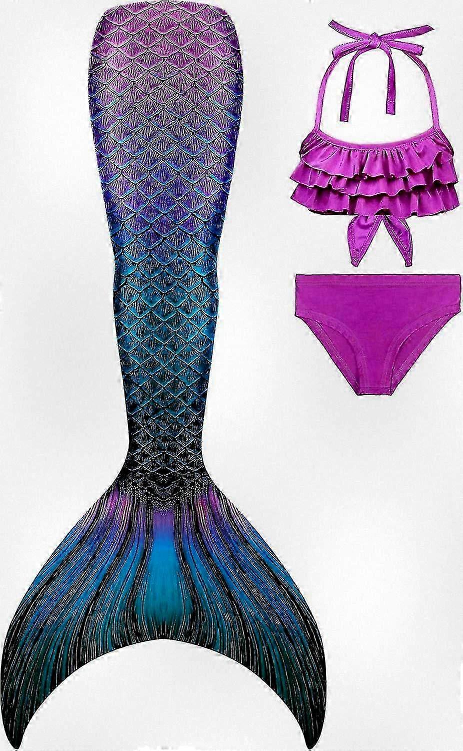 3-Piece Mermaid Swimsuit Set for Girls with Removable Tail, Fun Bathing Outfit for Kids, No Monofin Included