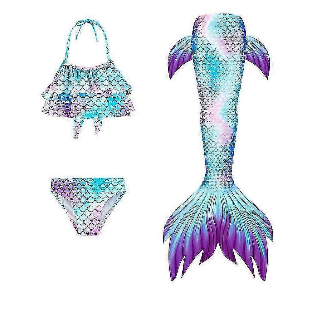 3pcs/set Girls Mermaid Tail Swimsuit Children Mermaid Ariel Cosplay Costume Fantasy Beach Bikini Set - DSW