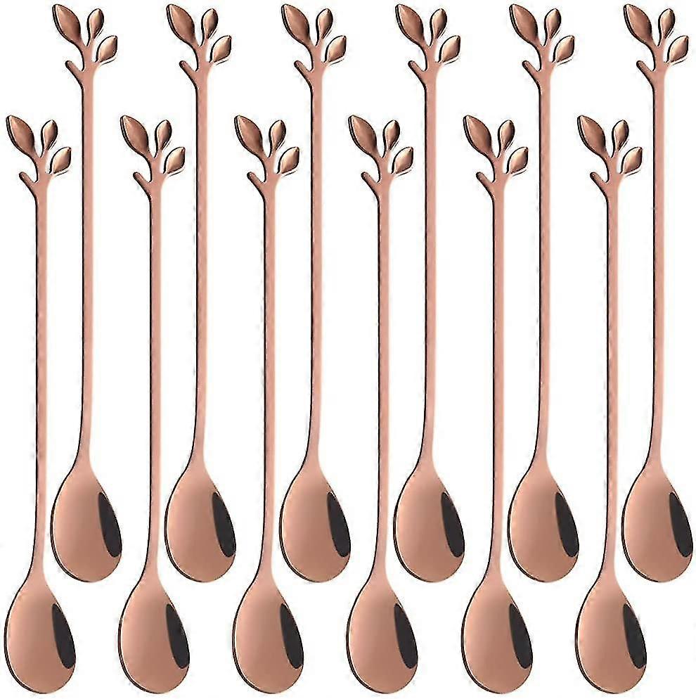 Long Handle Iced Tea Spoons Set,12 Pcs 7.4" Ice Cream Spoon, Creative Black Leaf Cocktail Stirring Spoons, Premium Food Grade Stainless Steel, Mirror