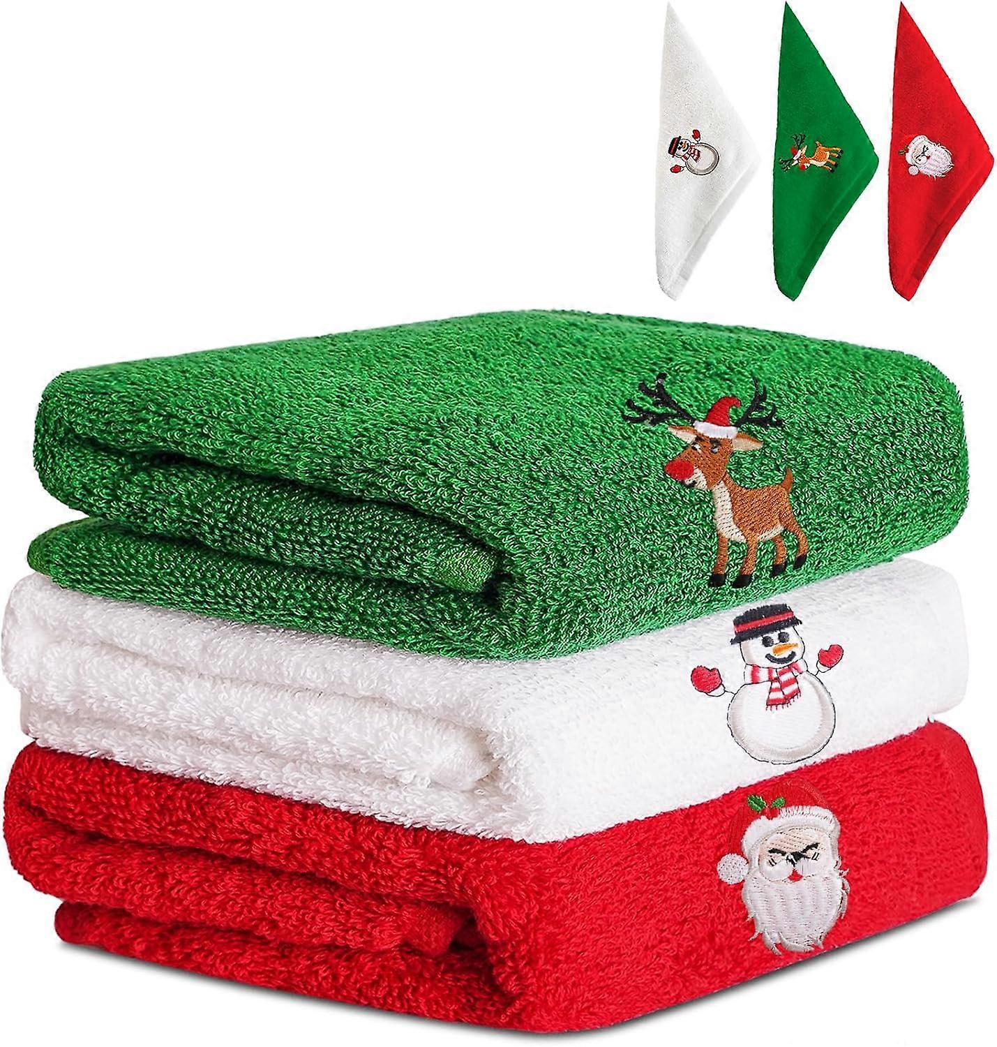 Christmas Towel Set, 3 Pieces Hand Towels Gift Set, Decorative Tea Towels, Embroidered Holiday Bath Towel, Face Towel, T SZRH A-F