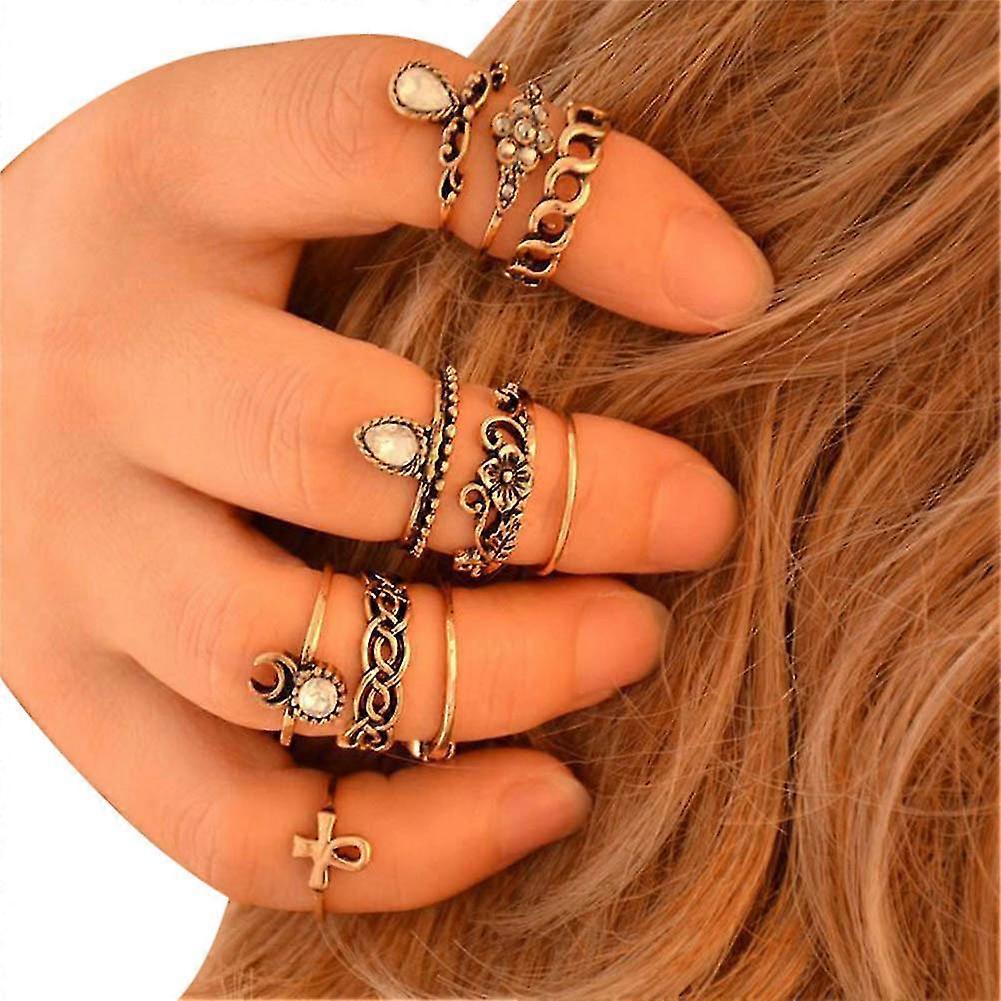 Set Of 10 Rings Boho Knuckle Ring Fashion Elephant Love Diamond Jewelry