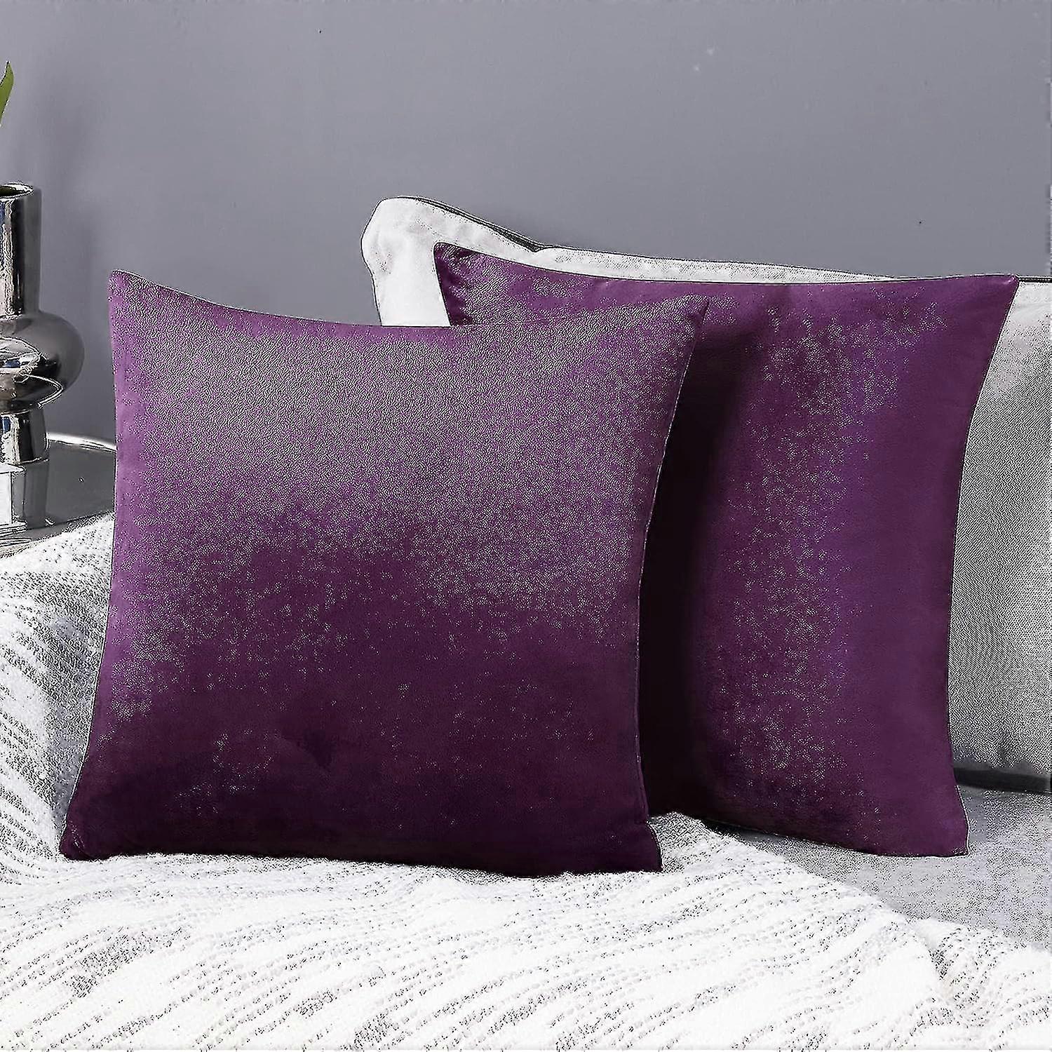 Set Of 2 Cushion Covers 45x45cm Velvet Pillow Case Dark Purple Decorative Cushion Cover