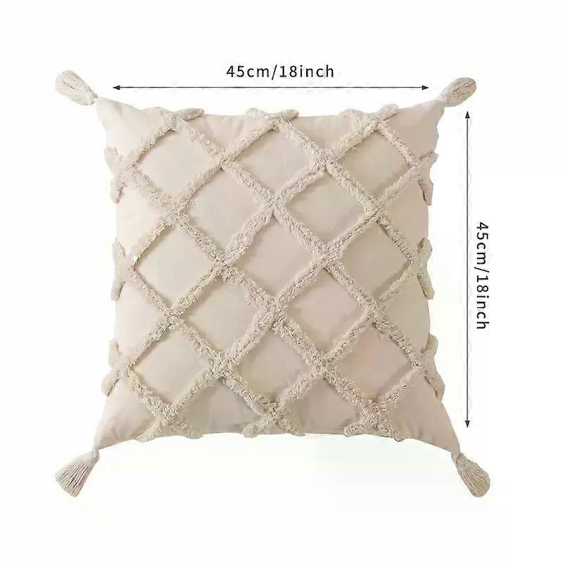 Set of 2 Beige Boho Pillow Covers, 18x18 inch Embroidered Pillowcase with Hidden Zipper Closure, Square Pattern Cushion Cover, Modern Decorative Farmh