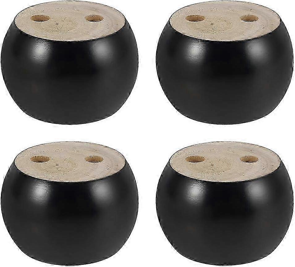 Set of 4 Round Wooden Furniture Legs, Height 5cm, for Sofa, Bed, Armchair, Wardrobe, with Screws and Ribbon (Black) Edition 0617