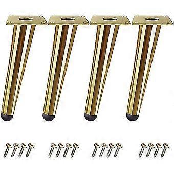 طقم من 4 أرجل طاولة مخروطية مائلة 10 سم ارتفاع حديد أثاث أرجل دعم مع مسامير - ذهبي